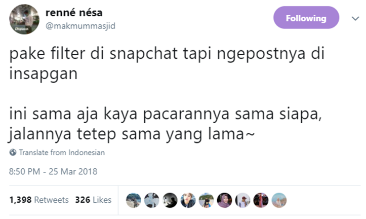 Dari mulai gambar tebak tebakan receh hingga screenshoot chat lucu mampu membuat warga twitter. Mungkin kamu yang kurang hiburan bisa stalking timelinenya doi. Terlalu banyak tweet receh yang aslinya enggak lucu tapi entah kenapa jadi berasa lucu banget.